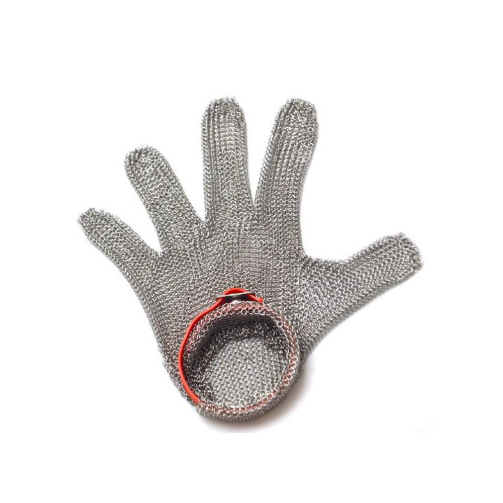 Рукавичка 1 штука (не пара) кольчужна з нержавіючої сталі від бренду FoREST. Виготовлена ??із міцної, гнучкої сітки спаяних металевих кілець. Плазмове зварювання кілець забезпечує тривалу зносостійкість та опір несподіваному зісковзування ножа. Захищає від порізів, життєво необхідний атрибут для професіоналів, що працюють із обвалкою та нарізкою сирого м'яса. Рукавичка підходить для правої та лівої руки, не обмежує рух пензля. Утримується від сповзання за допомогою кольорового пластикового ремінця. Розміри рукавичок марковані кольором ремінця. Білий – розмір S, червоний – розмір M, синій – розмір L. Характеристики: розмір – M.
