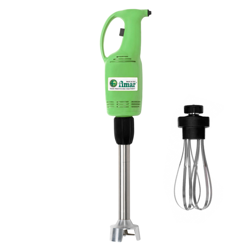 Ручні міксери FIMAR MХ40 рекомендуються для ресторанів, їдалень, лікарень, шкіл, дитячих садків, пекарень та кондитерських, фабрик-кухонь та невеликих виробництв. Вони дозволяють приготувати: соуси, овочеві протерті супи, рибні супи, овочеві пюре, печінкові паштети, фруктові пюре, джеми, дитяче та дієтичне харчування, тісто для млинців, креми, безе, збиті вершки, майонез (рекомендуємо вінчик), картопляне пюре маси, тісто для оладок (рекомендуємо вінчик). знімні розбірні насадки та ніж; надійність апарату: вибір матеріалів та ретельно розроблена конструкція забезпечують довгий термін служби; висока продуктивність: підвищена потужність двигуна дозволяє працювати з великим обсягом та забезпечує високу якість кінцевого продукту; простий догляд: штанга, ніж та насадка-подрібнювач повністю виготовлені з нержавіючої сталі. Дана модель міксера з FIMAR MХ40 призначена для подрібнення та перемішування продуктів до однорідної маси. Знімна насадка-блендер із нержавіючої сталі, вентильований двигун. Швидкість обертання регульована, об/хв: - ніж-змішувач 11 000 об/хв; - вінчик 500-1 400 об/хв.