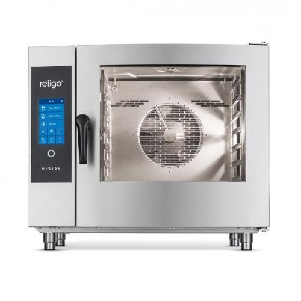 Пароконвектомати Retigo — це поєднання передових технологій, ціни та якості. Кожен пристрій замінює кілька видів теплового обладнання. Це дасть вам змогу спростити роботу персоналу та заощадити споживання ресурсів. Базова конфігурація всіх моделей включає систему автоматичного очищення і режим простого приготування, а також стулковий клапан і шеститочковий термощуп. Серія Blue Vision — це проста сенсорна панель керування, сучасне програмне забезпечення, великий вибір програм і можливість їх додаткового налаштування. Переваги пароконвектоматів Retigo: Технології, що використовуються в пароконвектоматах Retigo, дають змогу зберегти всі корисні властивості ваших страв і надають їм привабливого зовнішнього вигляду. Інтуїтивно зрозуміле і просте управління, з яким легко зможе розібратися персонал вашого закладу. Також пристрої оснащені чутливим сенсорним дисплеєм, який реагує навіть якщо ви в рукавичках. У кожному пароконвектоматі вбудована автоматична мийка. А також теплообмінник і дверцята з потрійним склінням із термоізоляцією завтовшки 50 мм забезпечують низьке споживання електроенергії та води. Усі пароконвектомати від бренду Retigo - це лаконічний, функціональний та ергономічний дизайн. Стандартне оснащення: Температурні режими: Гаряче повітря: 30 – 300 °C; Комбінований режим 30 – 300 °C; Приготування на пару 30 – 130 °C; BIO приготування 30 – 98 °C. Приготування страв: Нічне приготування; По рівневий контроль — налаштування часу для рівнів; AHC (Active Humidity Control) — автоматичне регулювання вологості; Опрацьована система пароутворення — двоступеневий підігрів води і рекуперації; Горизонтальне завантаження; Дельта T варіння — точність при приготуванні великих шматків; Низькотемпературне варіння; Cook & Hold - після закінчення варіння автоматичний перехід у фазу збереження; Golden Touch - ідеальний колір і хрустка скоринка; Автоматичний підігрів/охолодження варильної камери з налаштуванням; Спеціальні програми — Су-від, Сушка, Стерилізація, Конфі, Копчення. Система регенерації/банкетна система — готуйте, охолоджуйте та застосовуйте регенерацію, для того, щоб обслуговувати більшу кількість гостей; Окремі таймери для полиць — встановлюйте окремий час приготування для кожної полиці, щоб прискорити процес приготування кожної страви; Приготування та утримання — підтримуйте необхідну температуру страви до подачі. Програмне забезпечення “My Vision Controls” Розмір дисплея — 8". MyVision — налаштування відбору необхідних функцій. Сенсорна панель — без механічних елементів і кнопок. Easy Cooking — пристрій підбирає і рекомендує відповідну програму для необхідного результату. 6-ти точковий температурний щуп — для точного контролю температури. Понад 1000 програм у базі пристрою з поетапним розподілом. У кожній програмі 20 етапів. Піктограми — підбір позначень під функції. Функція Learn — збереження програми з індивідуальними налаштуваннями. 10 останніх — перегляд 10 останніх процесів. Multitasking - налаштування роботи дисплея під час роботи програми. Автоматичний запуск — відкладений запуск пристрою. EcoLogic — дані про споживання електроенергії для кожного процесу приготування виводяться на дисплей. Безлімітний час приготування — економія часу під час приготування. Інше обладнання: Active Cleaning — автоматична мийка. Дверцята з потрійним склом — мінімальні втрати тепла, низьке ене