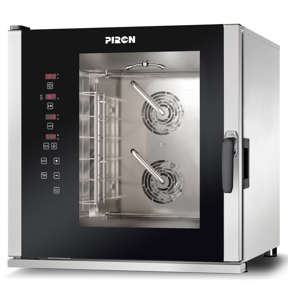 Пароконвектомати Piron — ідеальне рішення для будь-якого закладу громадського харчування, яке дозволяє варити, смажити, тушкувати, розморожувати, запікати і навіть коптити. Основною метою пароконвектомату Piron є спрощення роботи сучасного кухаря, скорочення часу на приготування їжі, зниження кількості споживаної енергії та продуктів, необхідних для одержання однієї готової страви. Переваги серії Vespucci Wash Vespucci Wash — це серія пароконвектоматів від Piron, яка відповідає характеристикам серії Vespucci та оснащена додатково можливістю автоматичного миття, що значно спрощує експлуатацію та робить робочий процес ще зручнішим. Ця серія пароконвектоматів також має цифрову систему управління, яка підтримує 99 програм. Для кожного рецепту можна задати до 5 етапів приготування. Печі Vespucci Wash підходять для приготування як за часом, так і за температурою. Можна використовувати різні режими: у сухому, комбінованому та максимально вологому середовищі. Ця серія пароконвекційних печей ідеально підходить для тих, хто воліє готувати, слідуючи точним технологічним процесам без зайвих складнощів. Для чого підходить серія Vespucci Wash? Підійде для середніх ресторанів, їдалень, кейтерингу. Гастрономія: приготування на пару, змішування та сухе приготування, приготування за допомогою термощупу. Випічка: свіжоспечена та заморожена випічка, печиво, суха випічка. Хліб: заморожений хліб та свіжоспечений хліб малого/середнього розміру. Загальні характеристики серії Vespucci Wash Конвекція та приготування на пару (технологія Sator Steam). Підключення до води. Автоматична мийка. Тип пароутворення: інжекторний. Розмір дек: GN 1/1 та 600х400 мм Цифрова панель керування. Кількість рецептів: 99. Фази приготування: 5. Опціонально можна підключити термощуп. Є попереднє нагрівання. Регулювання димоходу: технологія Optimal Climatic. Температура: 30-270°C. Швидкості вентилятора: 3. Реверс вентилятора: технологія Reverse Air Flow. Камера із нержавіючої сталі AISI 304. Технології серії Vespucci Wash Технологія Sator Steam Технологія Sator Steam забезпечує пар з насиченням до 100% шляхом створення дрібних частинок води. Технологія Optimal Climatic Система, яка забезпечує видалення надмірної вологи та підтримання вологості на бажаному рівні Технологія Reverse Air Flow Використовуючи кілька реверсивних вентиляторів, система Reverse Air Flow посилює потік повітря всередині варильної камери печі, гарантуючи однаковість випічки та наявність золотистої хрусткої скоринки. Завдяки контролю температури та пари, а також внутрішньої будови варильної камери Vespucci Wash забезпечує рівномірний процес приготування та високі стандарти приготування їжі.