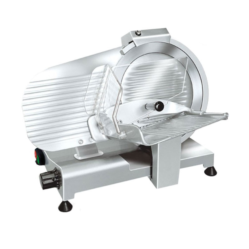 Слайсер Beckers BKL 220 призначений для нарізки м'яса, сиру, ковбасних виробів та інших продуктів харчування на рівні та подібні скибочки на підприємствах громадського харчування та торгівлі. Модель оснащена вбудованим пристроєм, що заточується, завдяки чому персонал підприємства легко може підтримувати належний рівень гостроти ножа. Ручка каретки виконана із пластику. Особливості: Двигун із природною системою вентиляції. Термічний блокатор, який автоматично зупиняє машину у разі перегріву двигуна. Рукозахисний щиток. Лезо з двостороннім заточуванням.